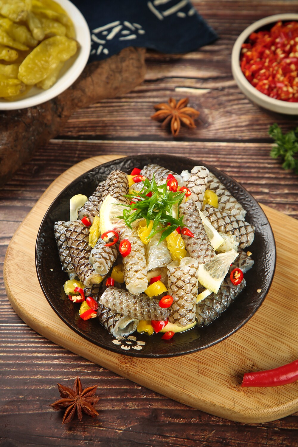 水产肉类/新鲜蔬果/熟食^凉菜/凉拌^^^广东 江门^阿具鱼小小泡椒鱼皮丝香辣凉拌开袋即食5袋零食海鲜商用发餐饮批
