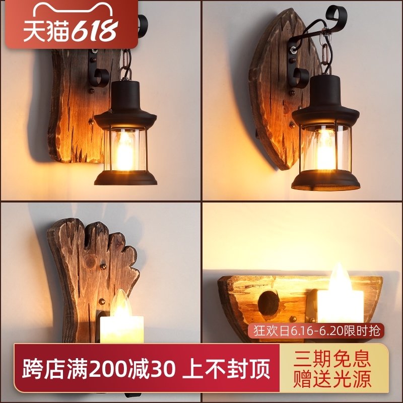 美式工业风酒吧餐厅过道壁灯卧室床头复古怀旧创意个性实木装饰壁热门设计联盟服务商