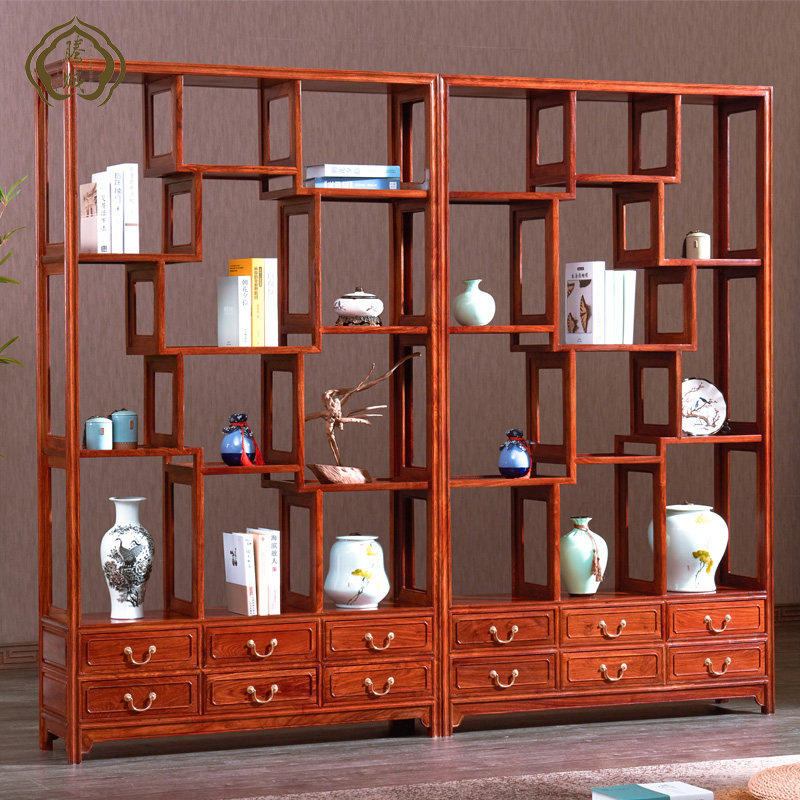 红木博古架刺猬紫檀实木架子置物架落地多宝格展示柜客厅隔断书架热门设计联盟服务商