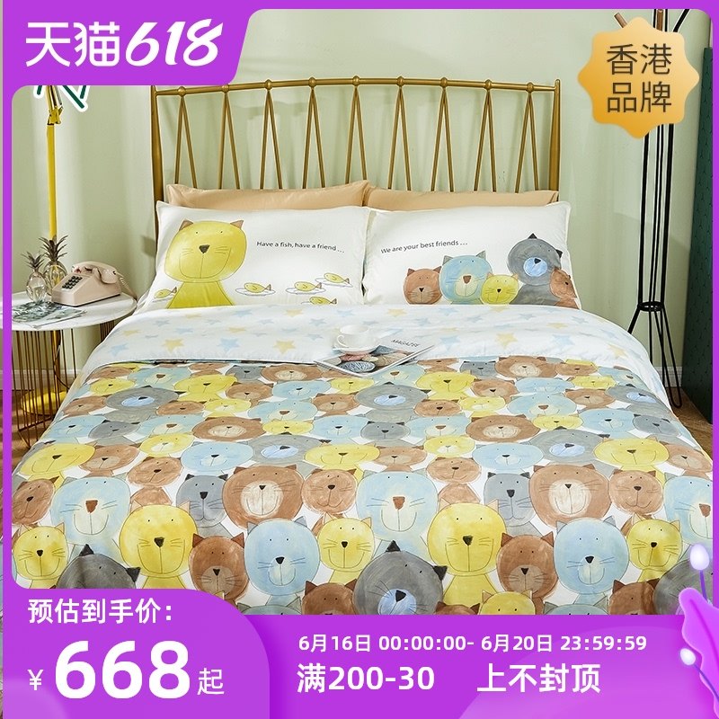 Rapee/丽飘天丝床上用品四件套可爱卡通猫咪床笠1.2m2米1.8四季款热门设计联盟服务商