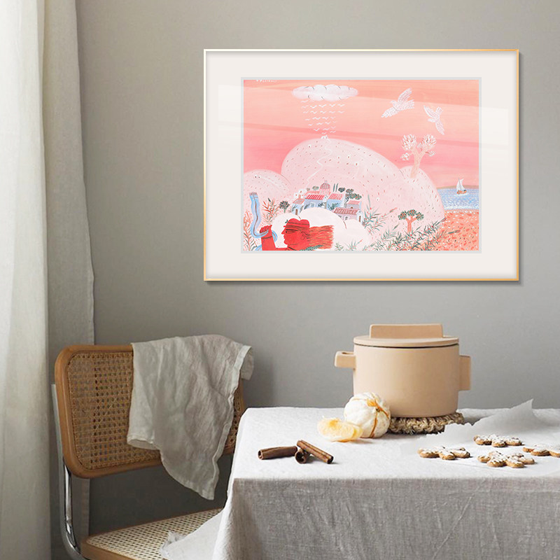 欧式复古装饰画艺术画小众餐厅卧室横幅挂画金属铝框壁画热门设计联盟服务商