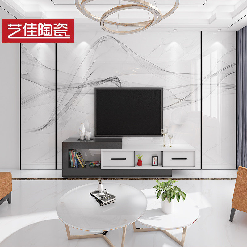 新中式电视背景墙瓷砖客厅微晶石影视墙造型轻奢墙仿大理石包安。热门设计联盟服务商