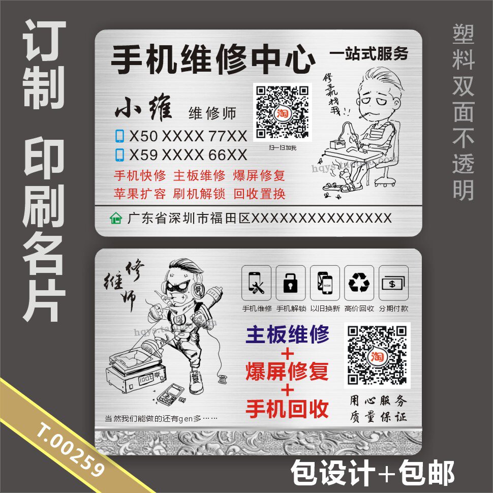 。PVC透明粗细磨砂手机维修中心通讯数码名片双面免费设计制作包热门设计联盟服务商
