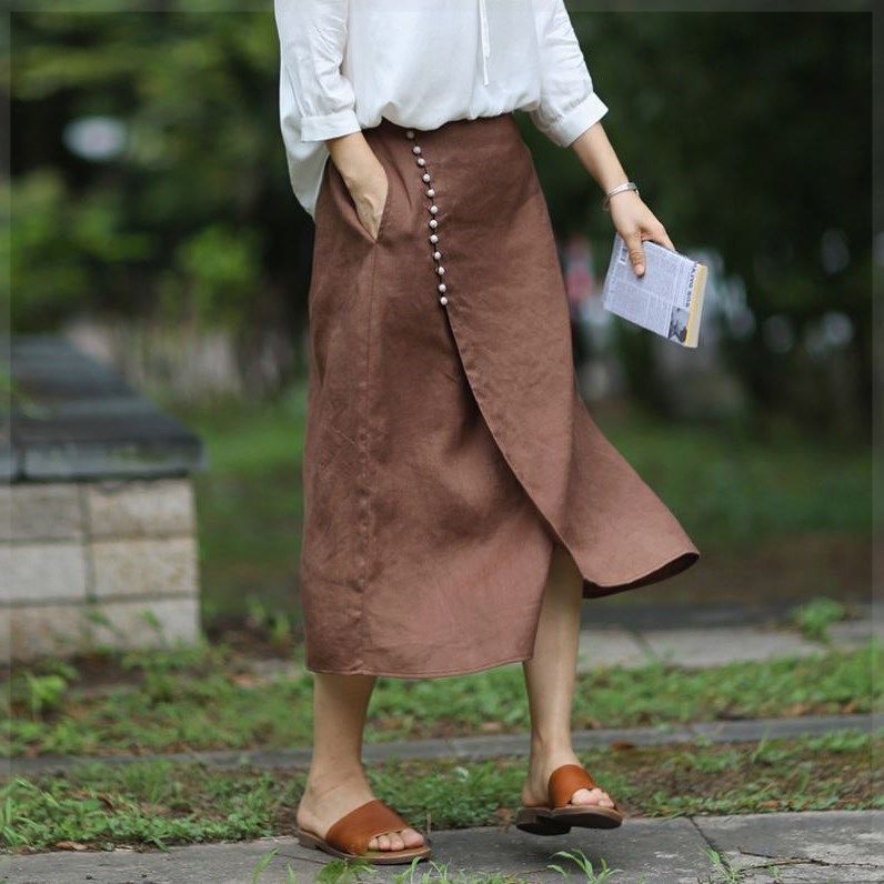 忘城D076座/似水/2021夏新款不规则亚麻半身裙A字气质显瘦设计感热门设计联盟服务商