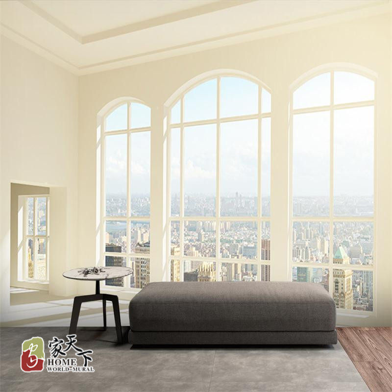 3D立体城市建筑窗户壁纸餐厅办公室直播拍照背景视觉延伸空间墙。热门设计联盟服务商