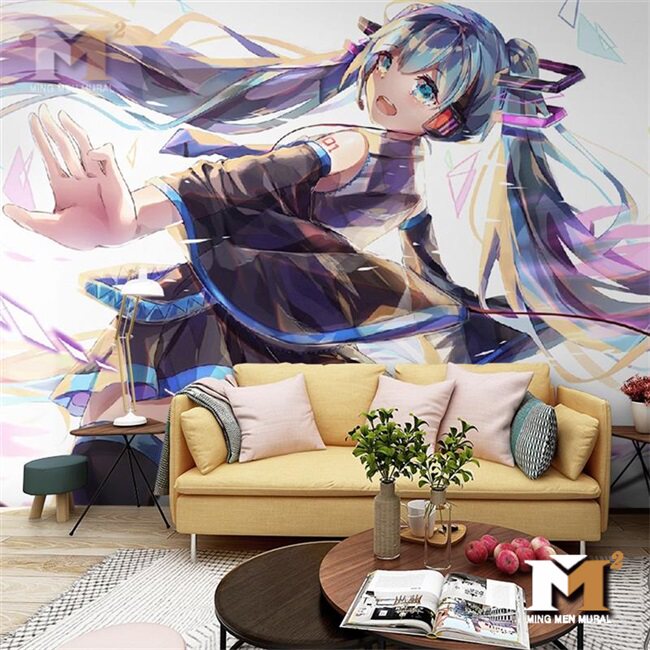 卧室动漫背景墙卡通漫画初音未来墙纸宅男床头布二次元壁。热门设计联盟服务商