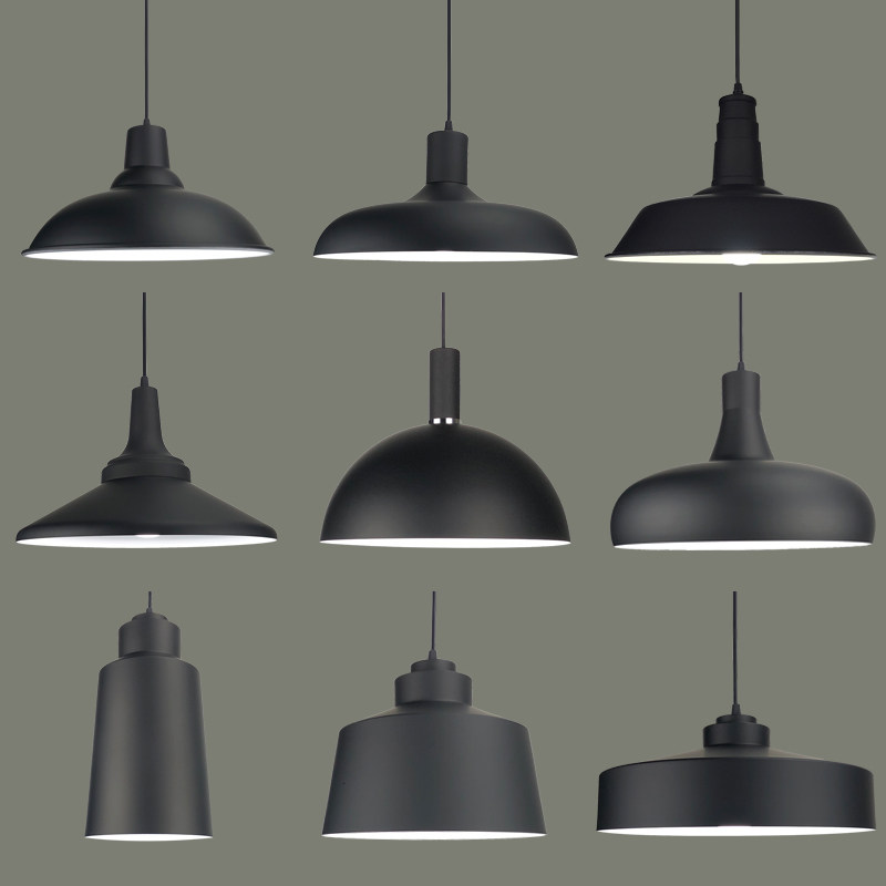 复古工业风餐厅时尚个性商铺灯具单头办公室黑色装饰创意锅盖吊灯热门设计联盟服务商