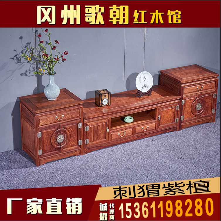 红木电视柜花梨木客厅中式地柜实木家具刺猬紫檀仿古影视柜组合热门设计联盟服务商