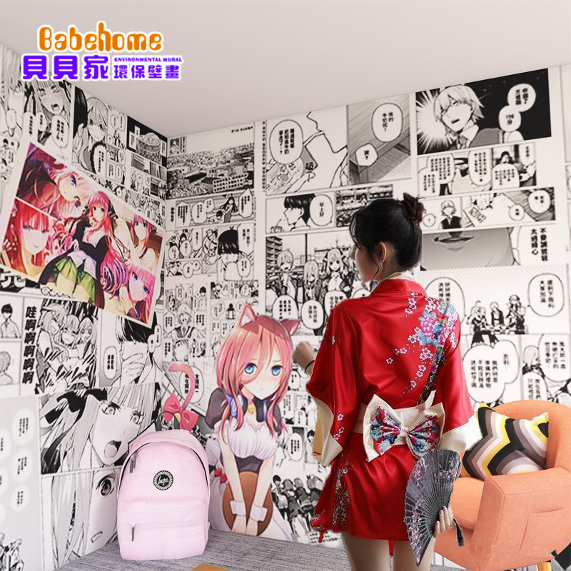 二次元黑白漫画墙纸动漫日式剧本杀壁纸卧室背景墙自拍馆墙布定制热门设计联盟服务商