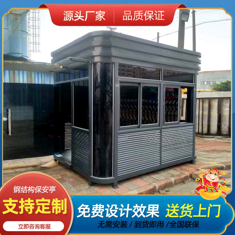 钢结构岗亭户外移动保安不锈钢门卫钢化玻璃值班停车场遮阳隔热亭热门设计联盟服务商