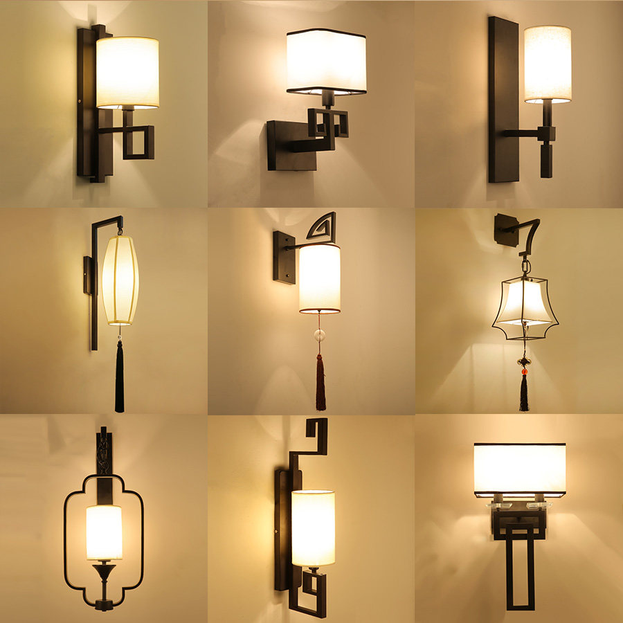新中式古典壁灯卧室床头灯客厅楼梯过道灯酒店茶楼会所背景墙壁灯热门设计联盟服务商