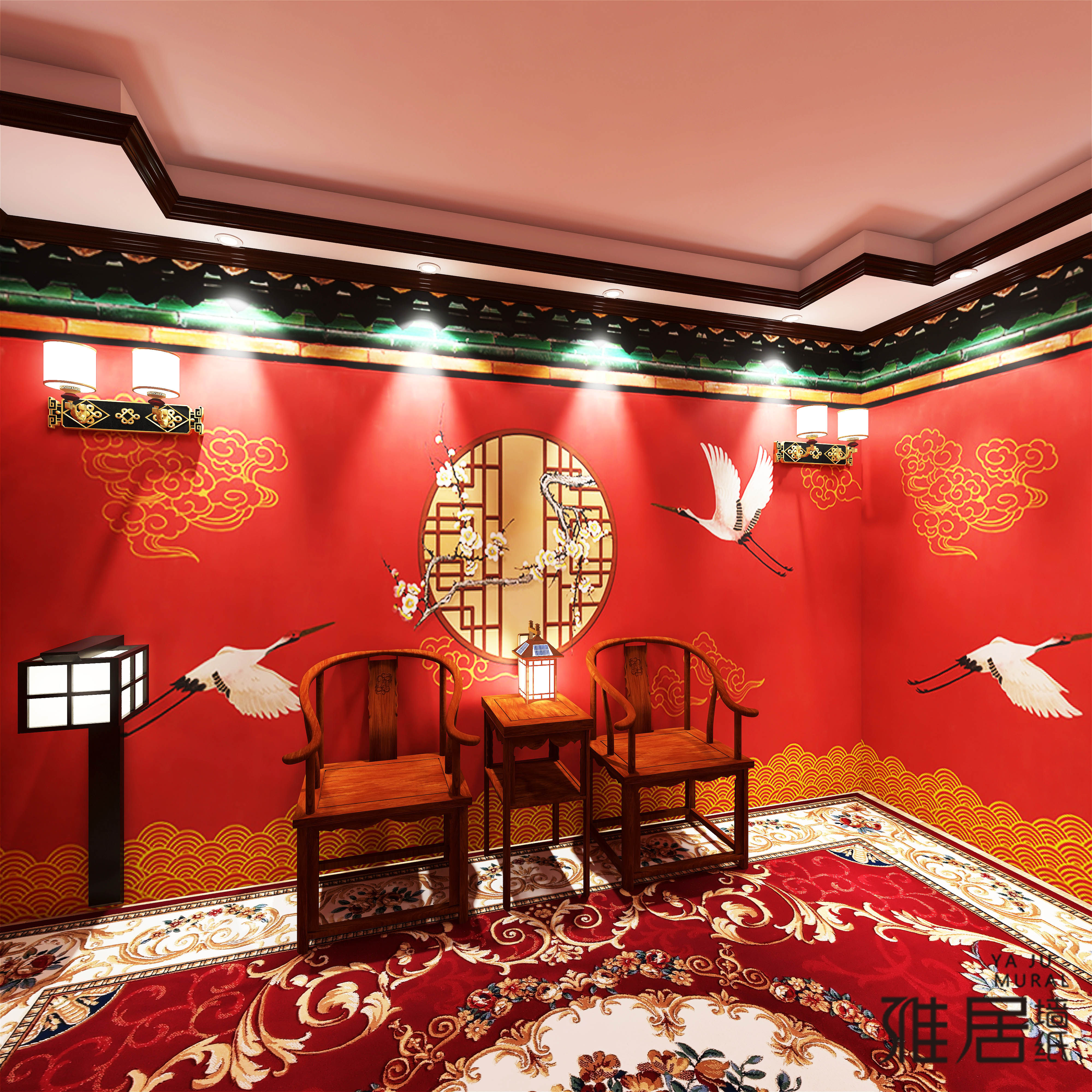 剧本杀古风装饰壁纸汉服自拍馆狼人杀桌游中国风装修复古中式墙纸热门设计联盟服务商
