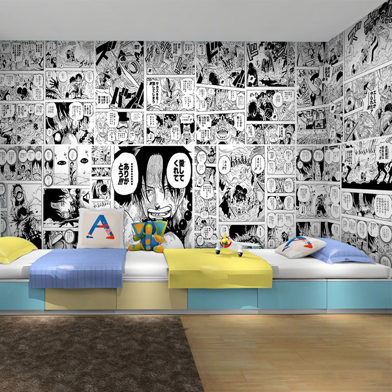 手绘海贼王航海王火影墙纸黑白漫画动漫海报儿童房卧室奶茶店壁纸热门设计联盟服务商