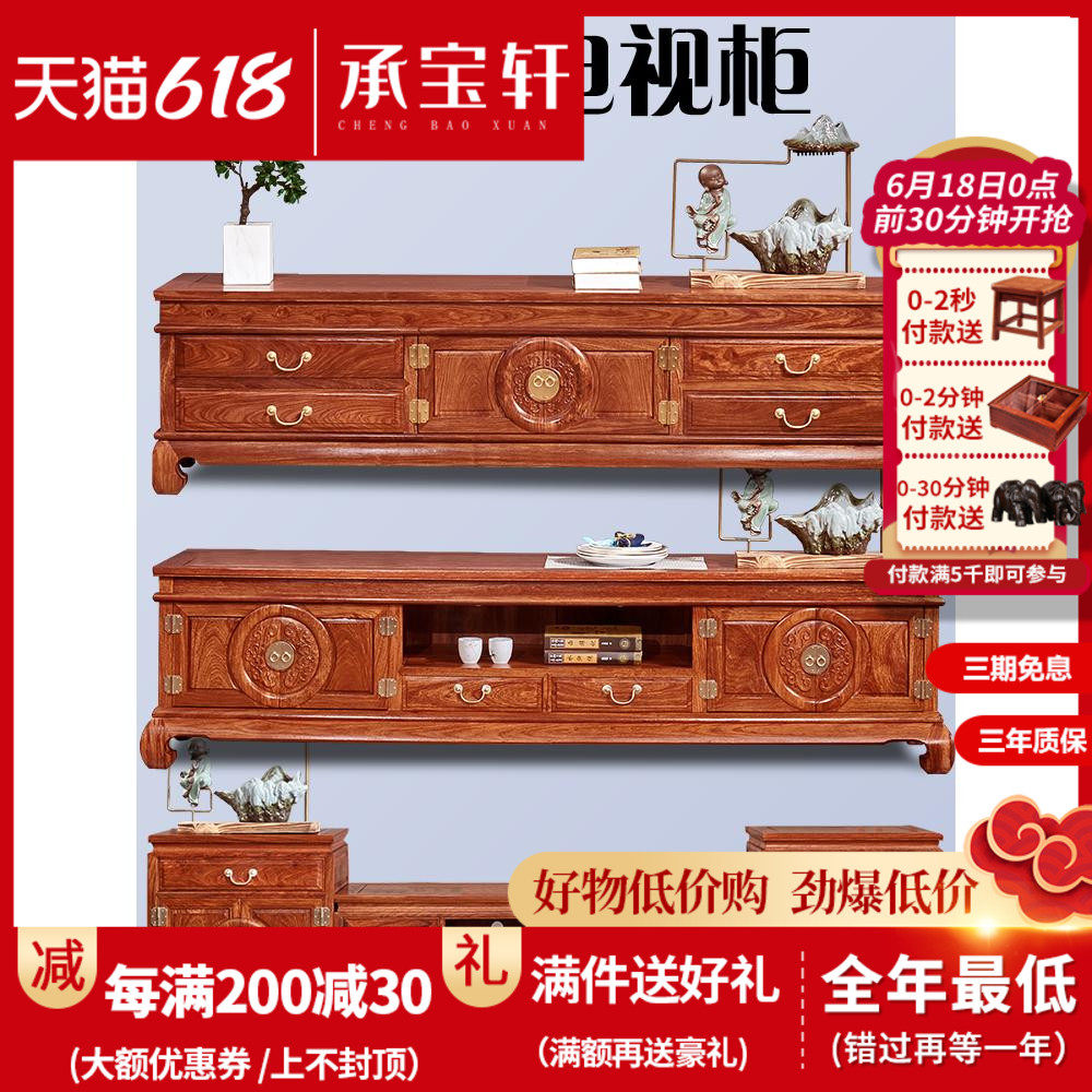 红木电视柜客厅新中式实木团圆影视柜实木地柜刺猬紫檀电视柜组合热门设计联盟服务商