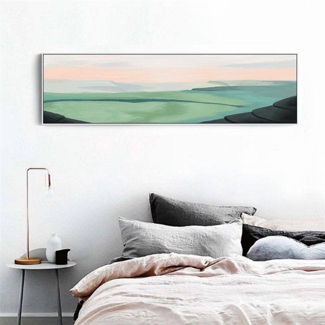 绘行画品 现代抽象卧室风景画装饰画床头挂画大气长横幅背景壁画热门设计联盟服务商
