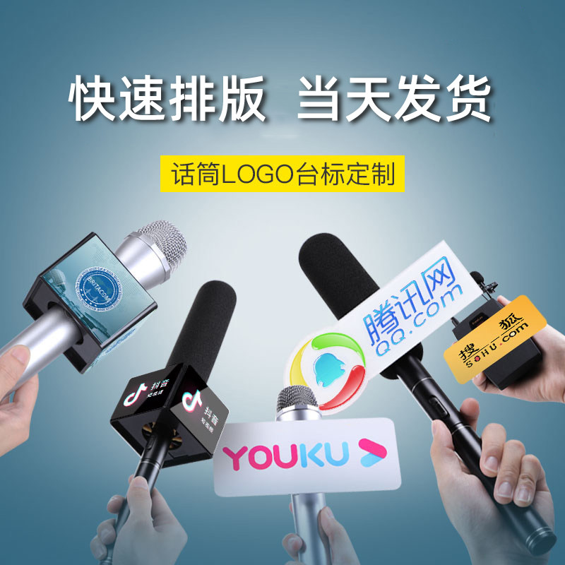 台标LOGO定制记者主持人新闻亚克力话筒套设计麦克风广告牌展麦标热门设计联盟服务商