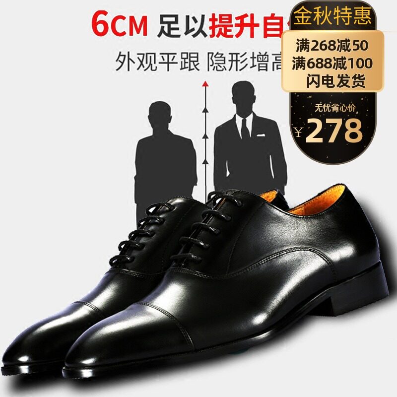 春夏季黑色尖头隐形内增高鞋6cm真皮商务正装牛津鞋小码男士皮鞋热门设计联盟服务商